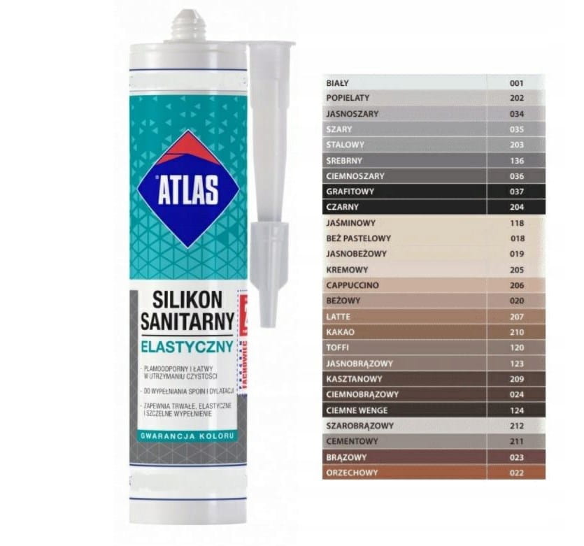 Atlas silikon sanitarny to jednoskładnikowy silikon na bazie polisiloksanów, który gwarantuje niezawodną ochronę przed wilgocią oraz mikroorganizmami.
