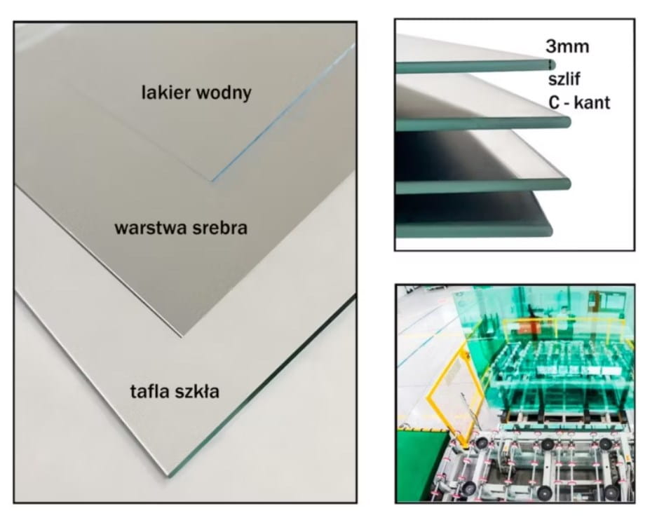 - Wykończenie: szkło szlifowane na krawędziach.
