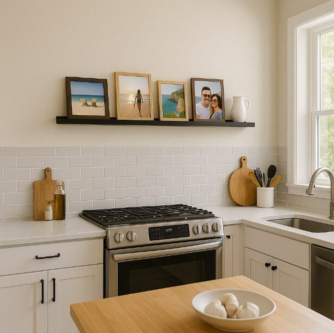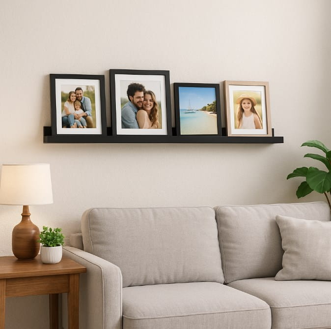 Dzięki długości 100 cm sprawdzi się wszędzie tam, gdzie chcesz stworzyć większą kompozycję zdjęć i ozdób — w salonie, sypialni, biurze, pracowni, pokoju dziecka czy korytarzu. Pozwala wygodnie prezentować ramki, rośliny, pamiątki i inne elementy dekoracyjne.