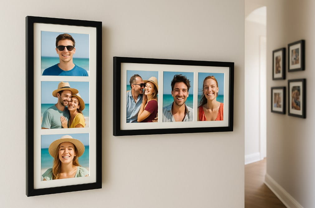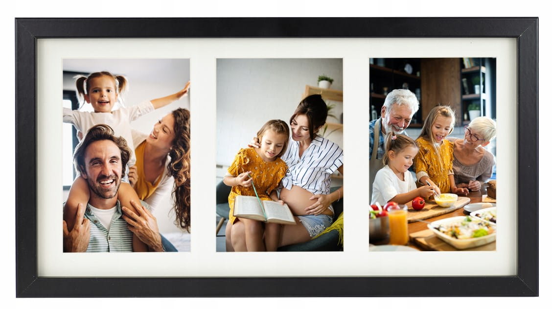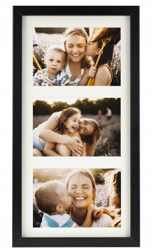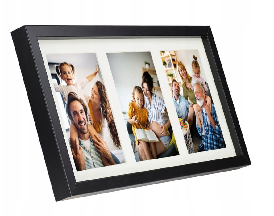 Ramka na trzy zdjęcia to doskonałe rozwiązanie dla osób, które chcą wyeksponować zestaw fotografii w spójny i efektowny sposób. Czarna, minimalistyczna oprawa podkreśla estetykę zdjęć, nie odciągając uwagi od ich treści.