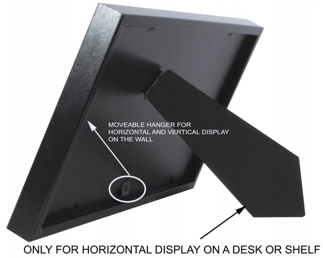 - Ramkę ustawiać na płaskiej, stabilnej powierzchni, z dala od krawędzi — uniknąć przypadkowego strącenia.