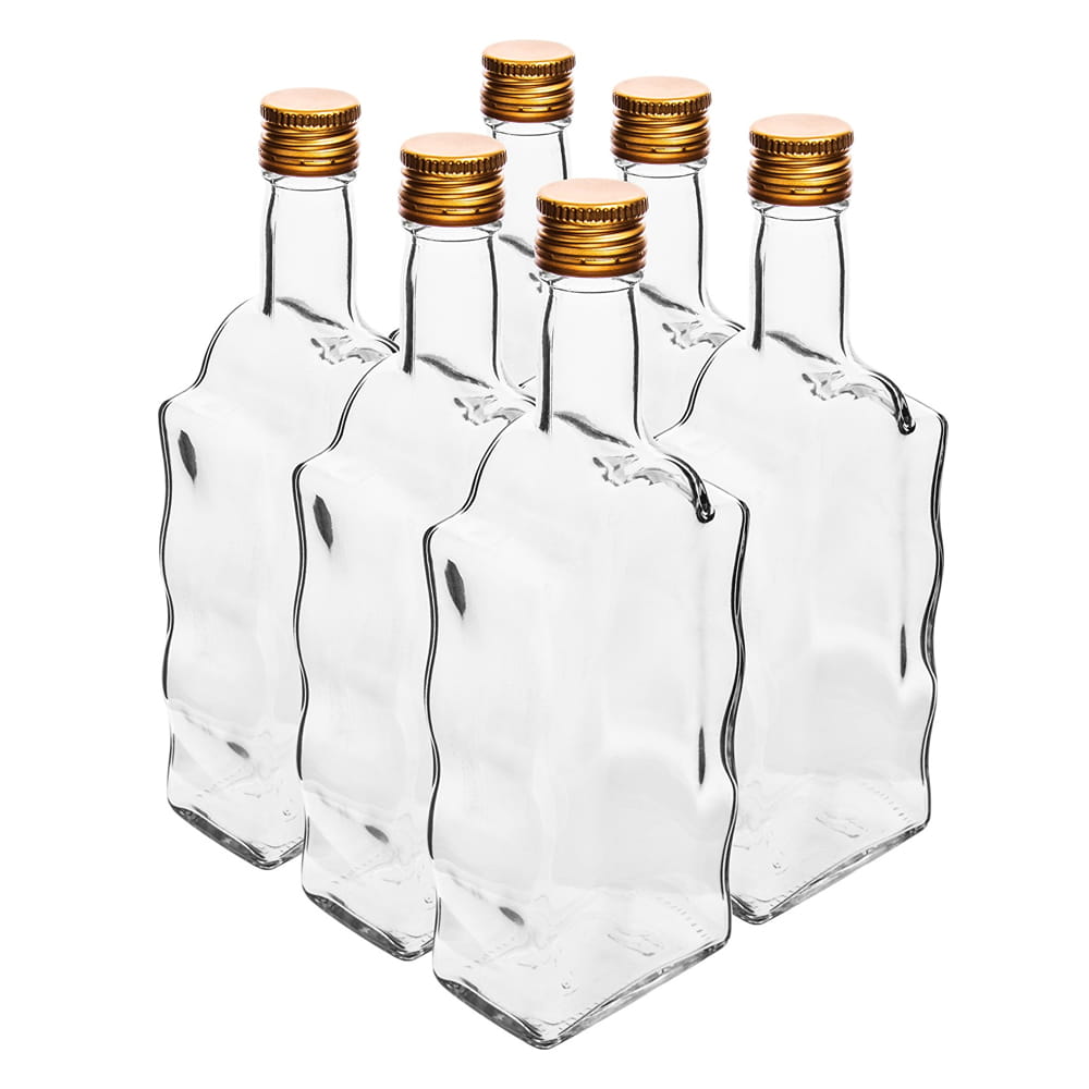 Zestaw 6 butelek o pojemności 500 ml z zakrętkami fi 28 mm w komplecie.