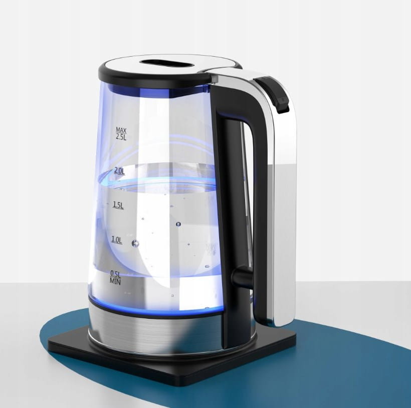 Duża pojemność 2,5 l daje realny komfort każdego dnia, a szklany korpus sprawia, że czajnik prezentuje się nowocześnie i lekko na blacie.