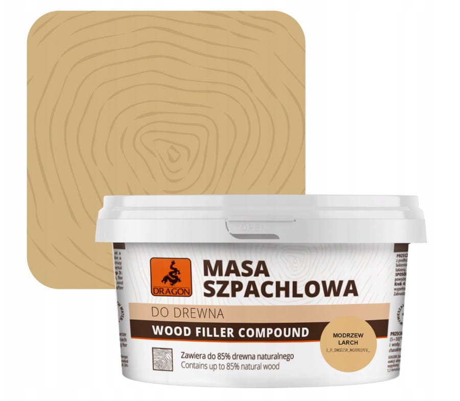Masa szpachlowa do drewna MODRZEW 250g DRAGON to niezastąpiony produkt dla każdego, kto ceni sobie jakość, trwałość i estetykę w pracach renowacyjnych drewna. Dzięki wyjątkowej formule i łatwości użycia, naprawa drewnianych powierzchni staje się szybka, efektywna i trwała. Wybierz masę szpachlową DRAGON i ciesz się perfekcyjnym efektem każdej naprawy!