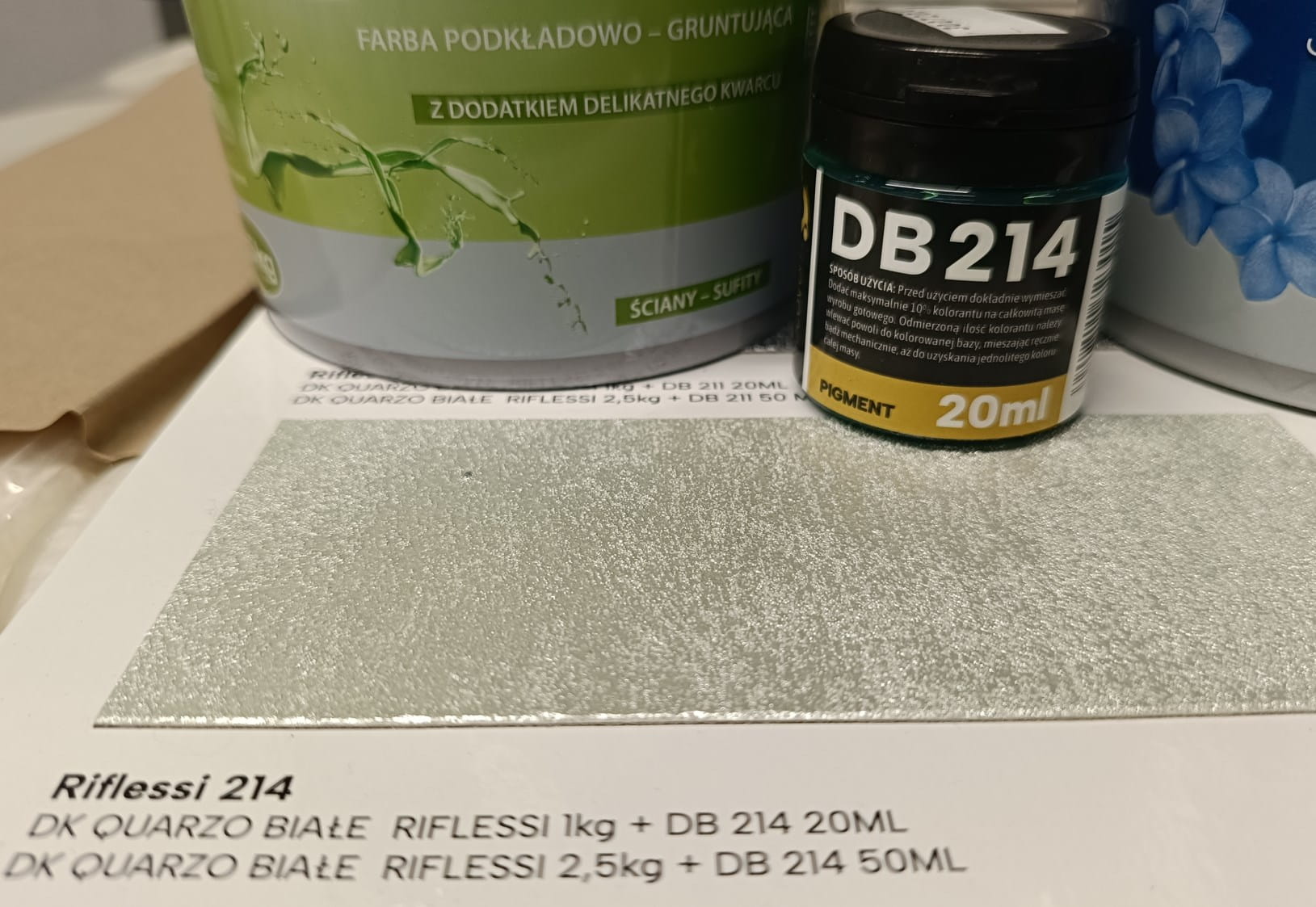 ✔️ Typ: farba akrylowa metaliczna do wnętrz z opalizującym kruszywem