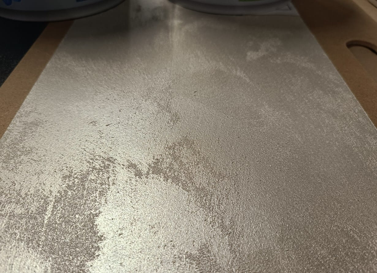 2. Tło: zagruntuj; po wyschnięciu zastosuj Decoverni Quarzo jako jednolite, matowe tło pod metalik.