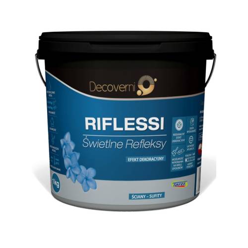 Decoverni Riflessi to metaliczna farba akrylowa z opalizującym kruszywem, zaprojektowana do tworzenia eleganckich, żywych efektów bez wrażenia „brokatu”. Kierunek prowadzenia narzędzia przekłada się na rytm i głębię, a gotowa powłoka jest łatwa w pielęgnacji na co dzień.