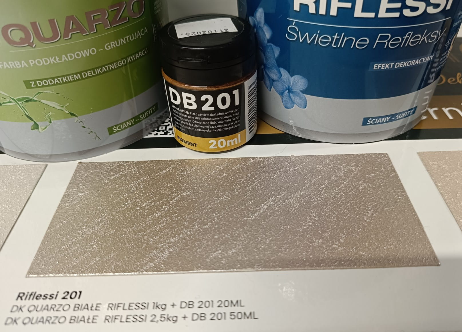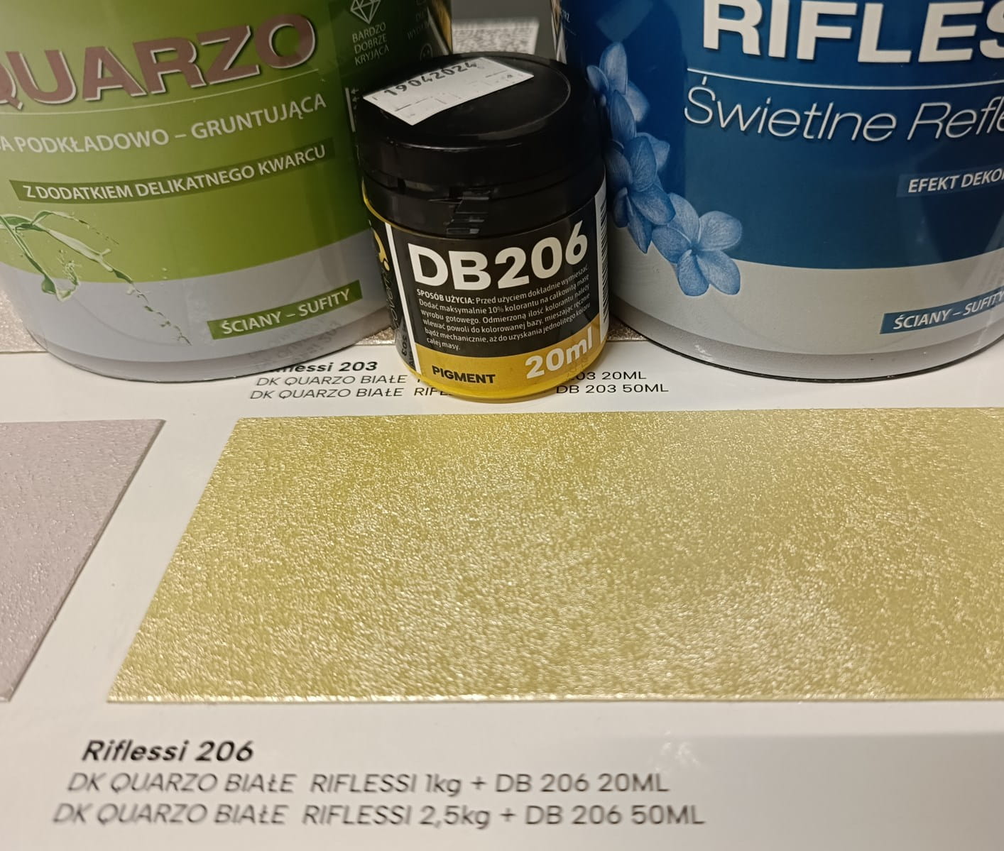 Identyfikacja wyrobu: Decoverni Riflessi – farba akrylowa strukturalna (baza). Numer partii na etykiecie.