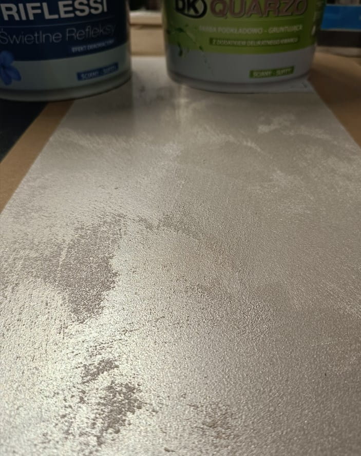 Trzymaj się prostej sekwencji: grunt głęboko penetrujący, następnie Decoverni Quarzo jako jednolite, matowe tło, a na końcu Riflessi. Tak przygotowana baza porządkuje odbicie światła, ułatwia prowadzenie narzędzi i zapewnia spójność efektu na długich odcinkach ścian.