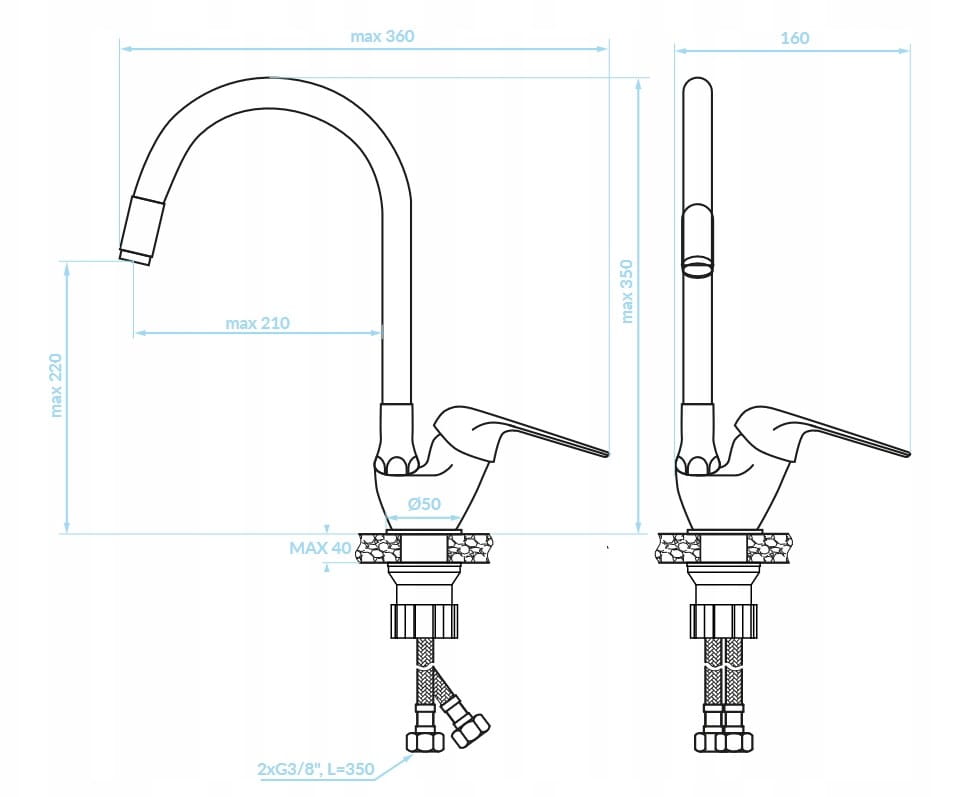 ✔️ Wylewka: elastyczna, obrotowa 360°