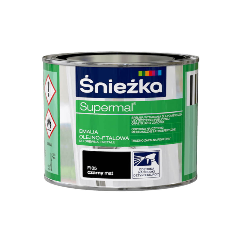 Śnieżka SUPERMAL to wysokiej jakości emalia olejno-ftalowa, przeznaczona do dekoracyjno-ochronnego malowania różnorodnych powierzchni.