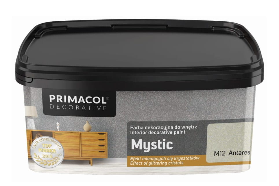 Dzięki temu farba Mystic doskonale komponuje się z różnymi aranżacjami wnętrz, umożliwiając tworzenie wyjątkowych efektów dekoracyjnych. Każdy z dostępnych kolorów wzbogacony jest o drobinki brokatu, które nadają powierzchniom delikatny, satynowy blask, intensyfikujący się przy dobrym oświetleniu.