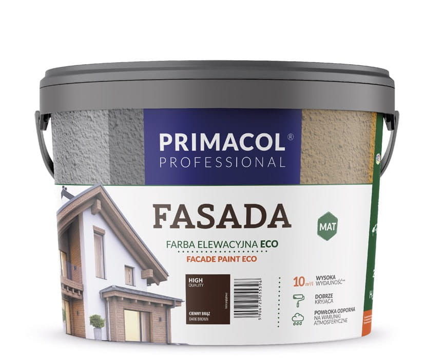 Farba elewacyjna Primacol Professional Fasada ECO to innowacyjne podejście do malowania zewnętrznych powierzchni Twojego domu, które łączy zaawansowaną technologię z trwałością i estetycznym wykończeniem.