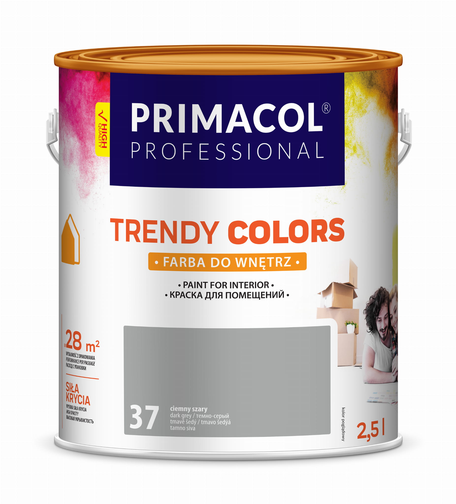 Primacol Trendy Colors – farba akrylowa do wnętrz o matowym wykończeniu i odporności na zmywanie