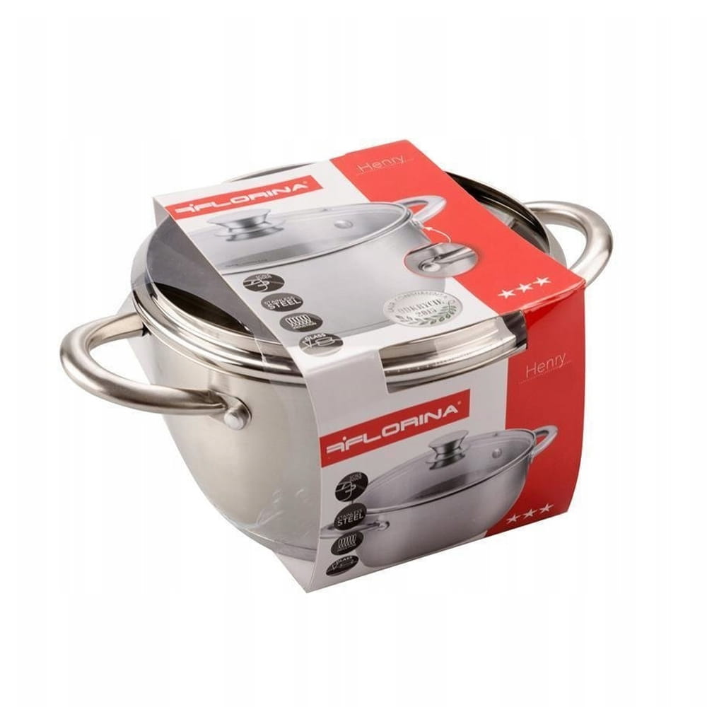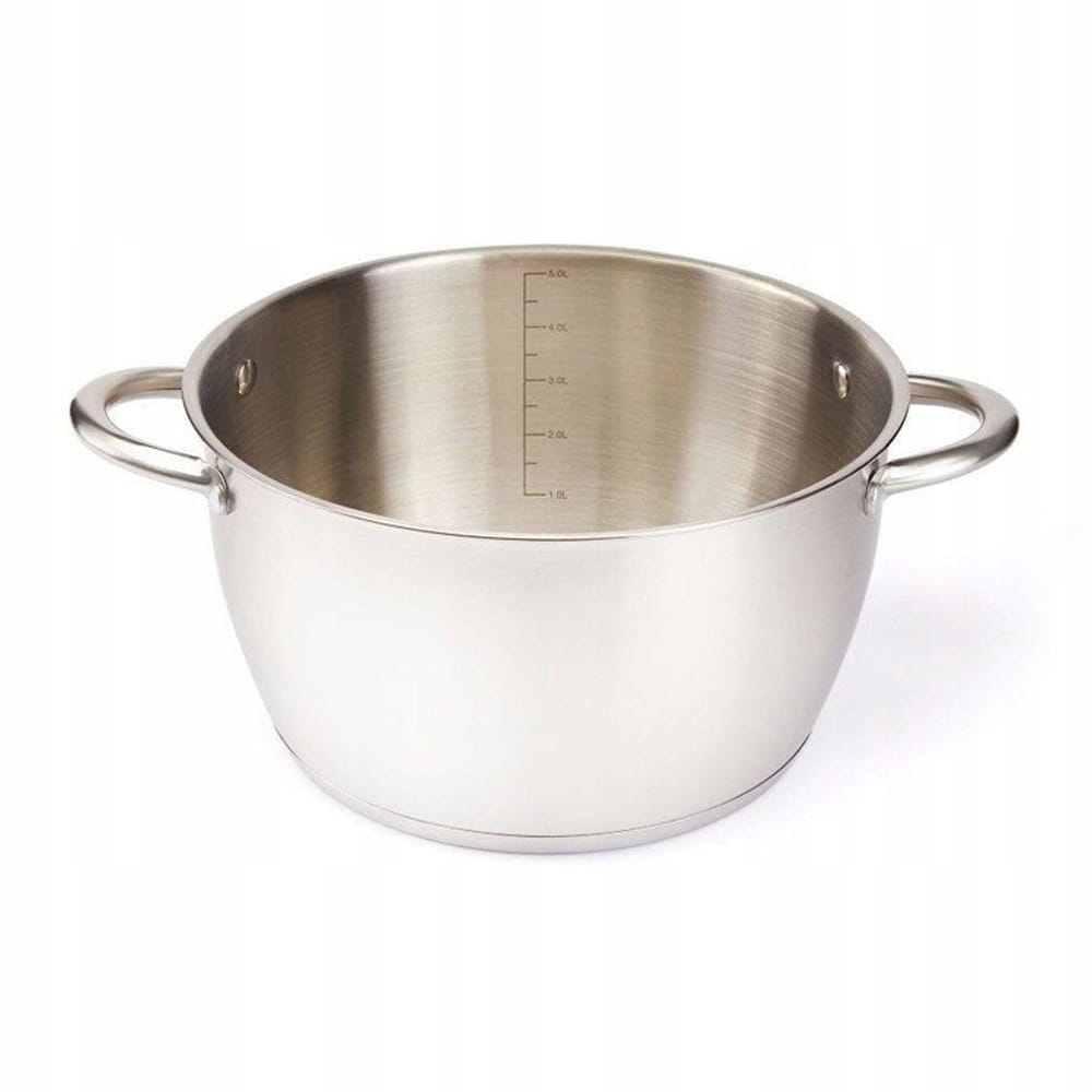 Garnek wykonany z wysoce odpornej i bezpiecznej dla zdrowia stali nierdzewnej wyprofilowana krawędź garnka dla łatwego przelewania zawartości solidne uchwyty ze stali nierdzewne.