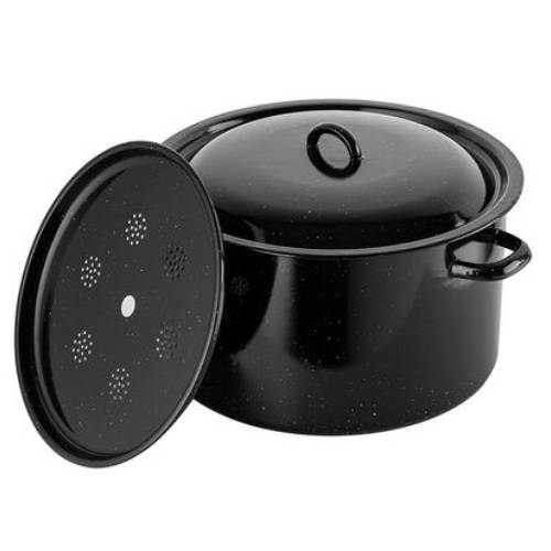 Poza pasteryzacją, garnek sprawdzi się do gotowania kompotów, bigosu, zup na większe przyjęcia czy wywarów na przetwory. Można używać na kuchenkach gazowych, elektrycznych i ceramicznych. Klasyczny wygląd i czarny, nakrapiany kolor emalii pasują do każdej kuchni – od rustykalnej po nowoczesną.