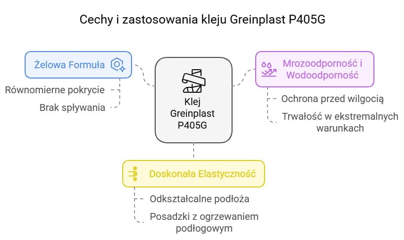 Greinplast P405G to klej elastyczny, który sprawdzi się na odkształcalnych i nieodkształcalnych podłożach. Można go stosować na posadzkach z ogrzewaniem podłogowym, ponieważ doskonale kompensuje naprężenia powstające podczas rozszerzania i kurczenia się materiałów. Jest to także świetne rozwiązanie na ściany, sufity oraz elewacje.