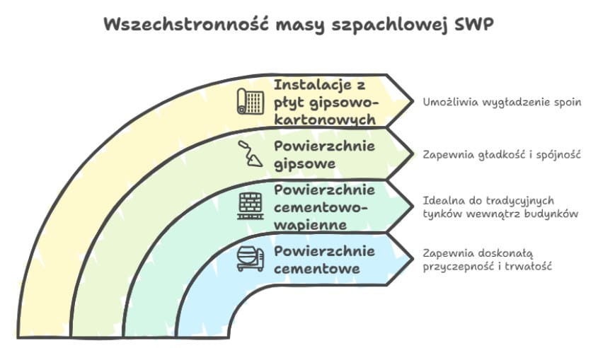 Masa polimerowa SWP nadaje się do różnych typów podłoży, co czyni ją uniwersalnym wyborem dla projektów budowlanych i remontowych. Może być stosowana na powierzchniach: