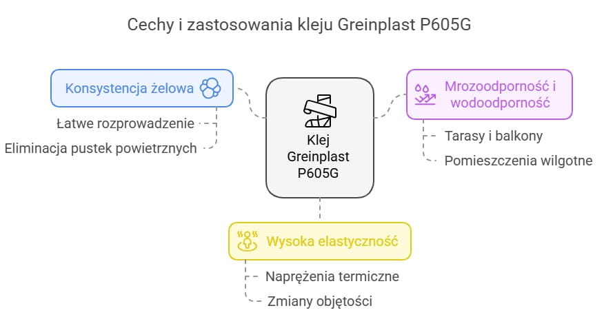 Formuła Greinplast P605G sprawia, że jest on całkowicie odporny na wilgoć oraz mróz, dzięki czemu świetnie sprawdzi się na balkonach, tarasach, elewacjach oraz w pomieszczeniach narażonych na działanie wody, takich jak łazienki czy kuchnie. Klej nie traci swoich właściwości nawet w trudnych warunkach atmosferycznych, zapewniając długotrwałą trwałość połączeń.
