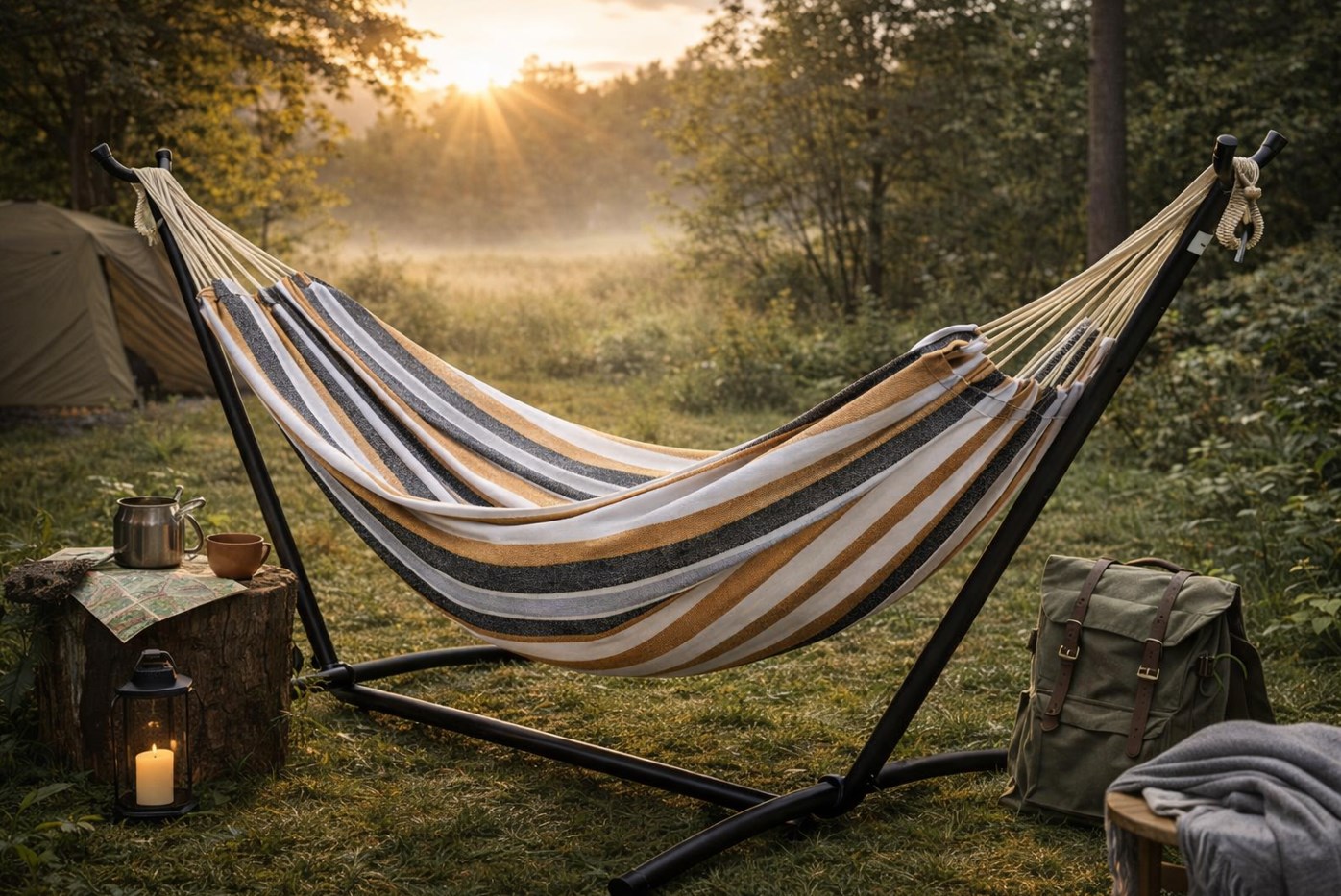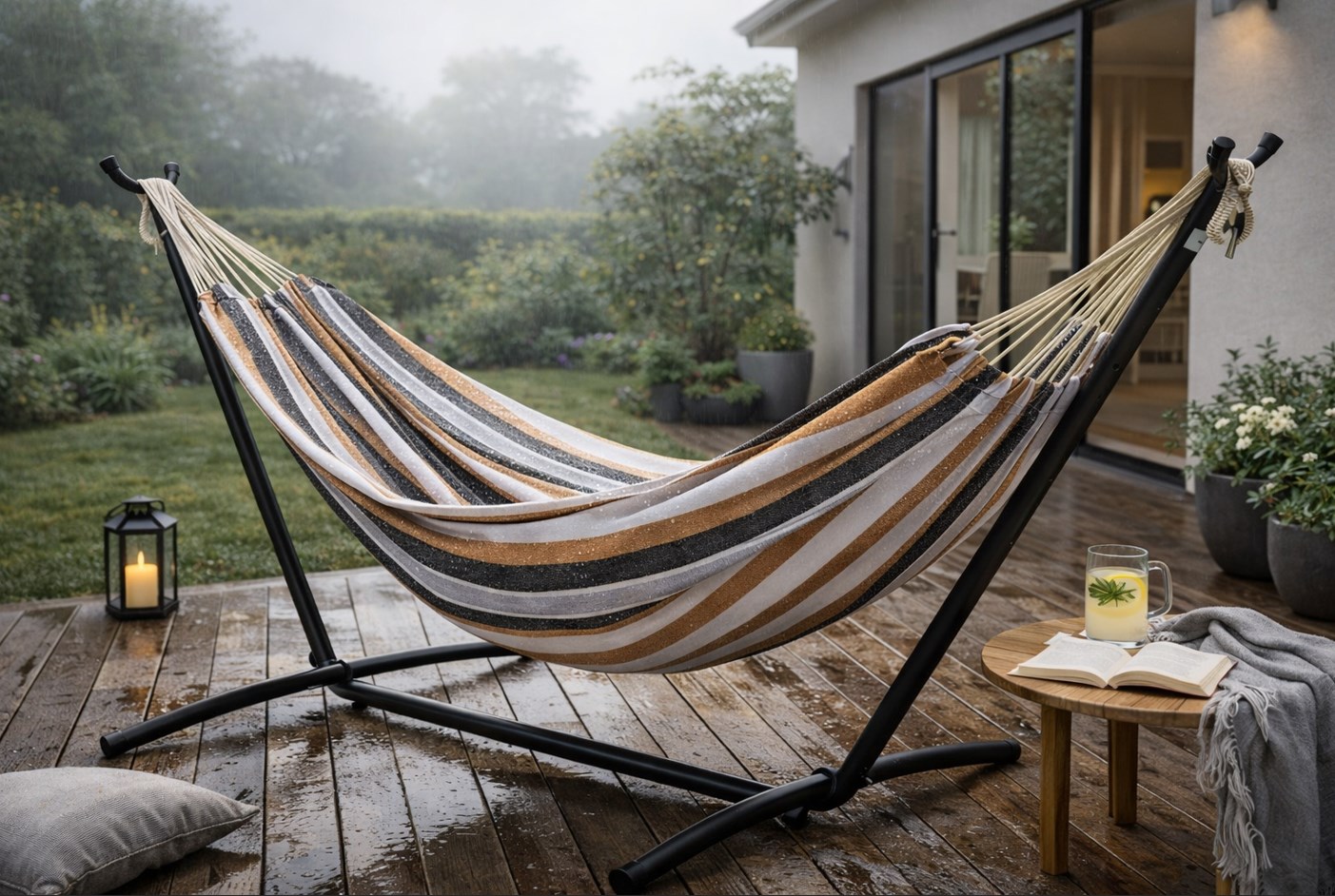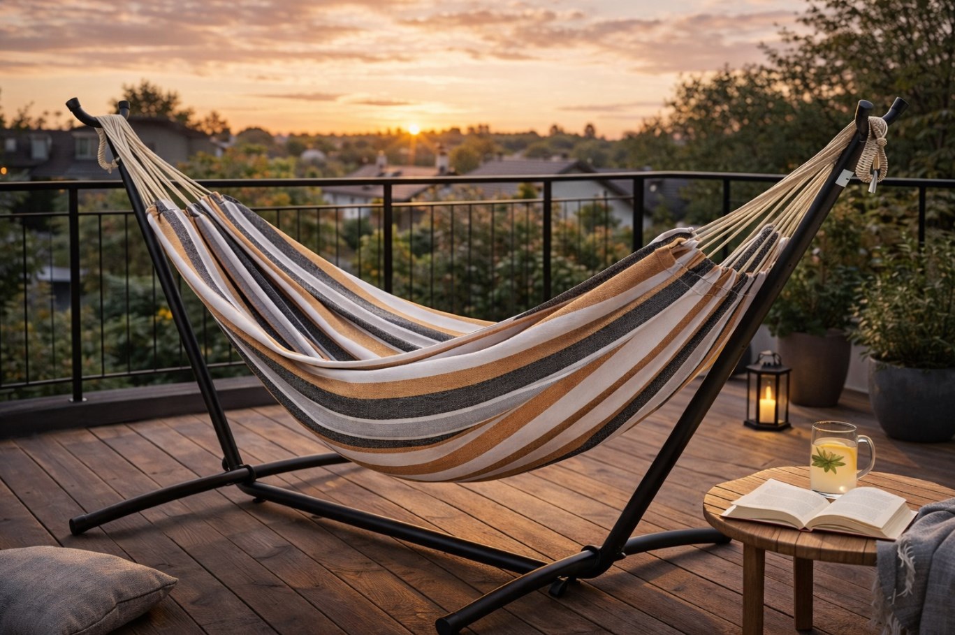 Tak. To jeden z tych produktów, które bardzo szybko zmieniają zwykły kawałek ogrodu albo tarasu w gotową strefę wypoczynku. Masz stelaż, haczyki w komplecie i gotowy hamak, więc łatwiej stworzyć miejsce, z którego naprawdę będzie się korzystać przez cały sezon.