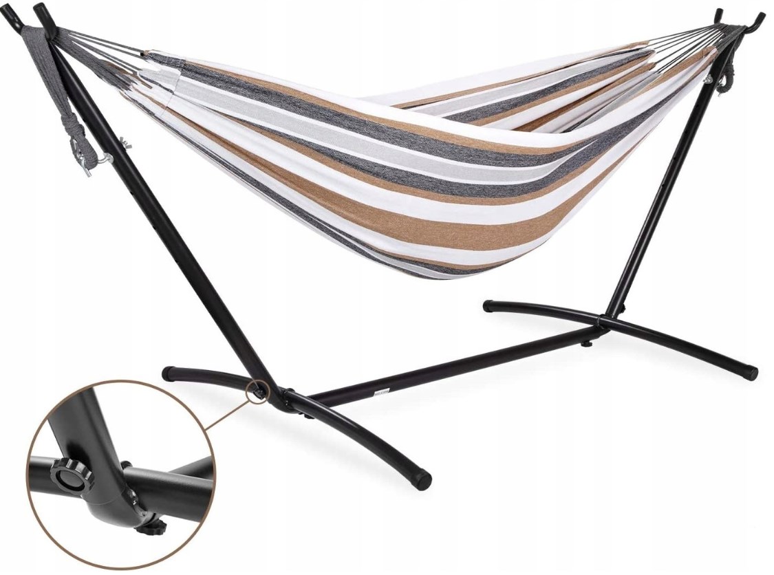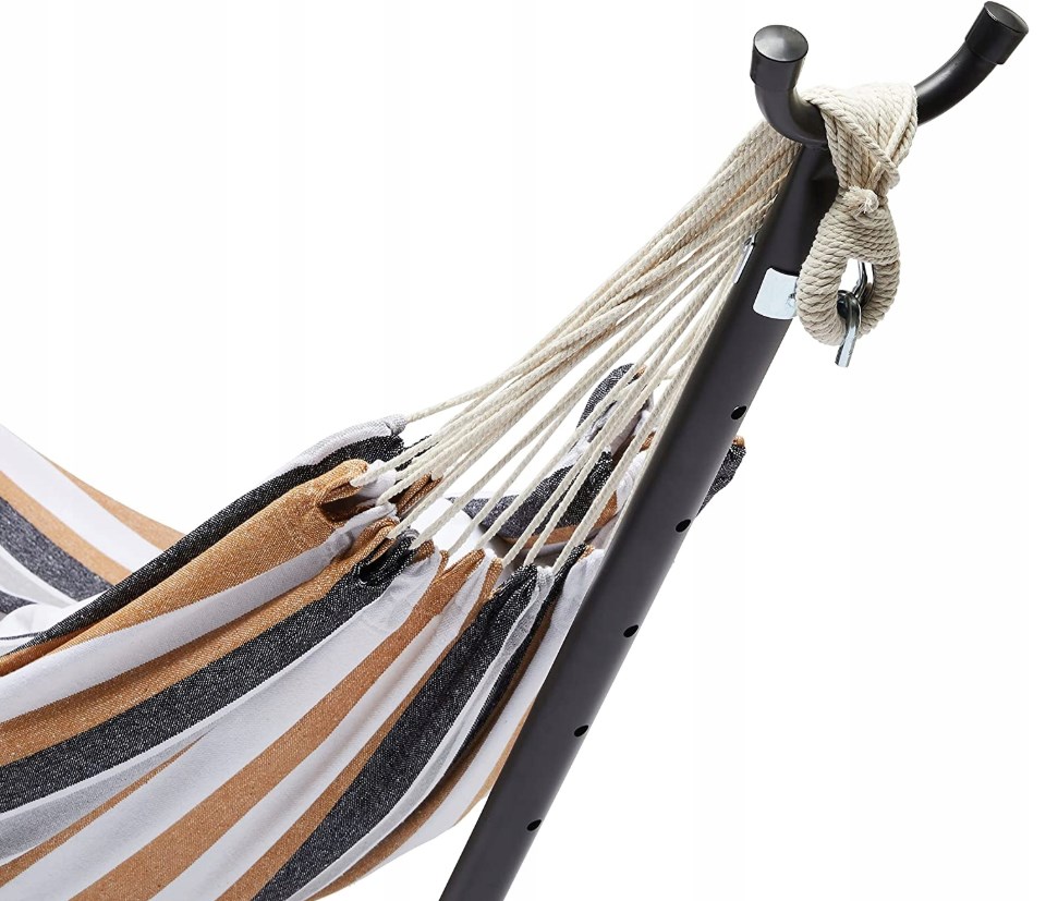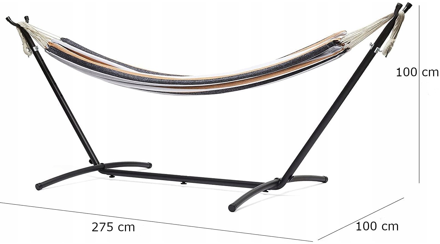 Przed zakupem warto sprawdzić, czy masz odpowiednio dużo miejsca na ustawienie zestawu o wymiarze 260 x 105 cm. Dzięki temu łatwiej dopasujesz hamak do ogrodu, tarasu lub działki i od razu ustawisz go tam, gdzie będzie najwygodniejszy w codziennym użytkowaniu.