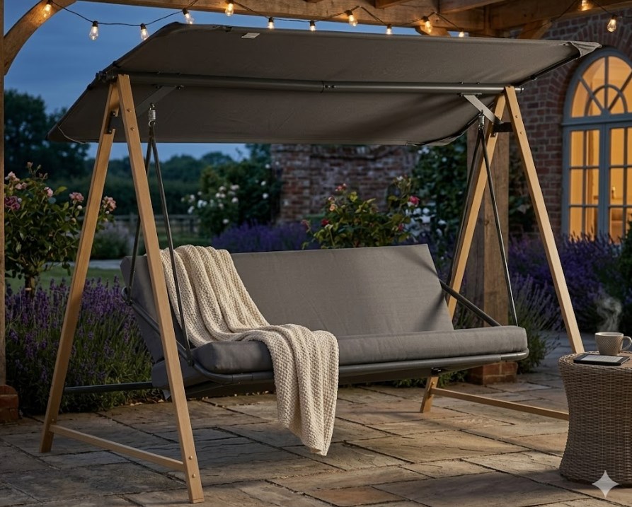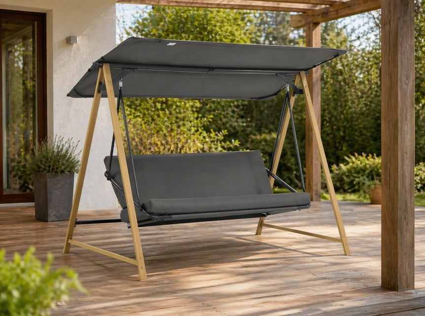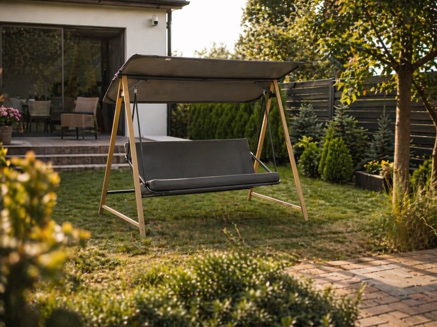 Dużo daje też sama rozkładana konstrukcja. Dzięki niej huśtawka lepiej dopasowuje się do różnych sposobów odpoczynku. Raz sprawdza się jako wygodne miejsce do siedzenia i rozmowy, innym razem pozwala odpocząć w bardziej swobodnej pozycji. Właśnie dlatego ten model dobrze odnajduje się w codziennym użytkowaniu, a nie tylko jako sezonowy dodatek.