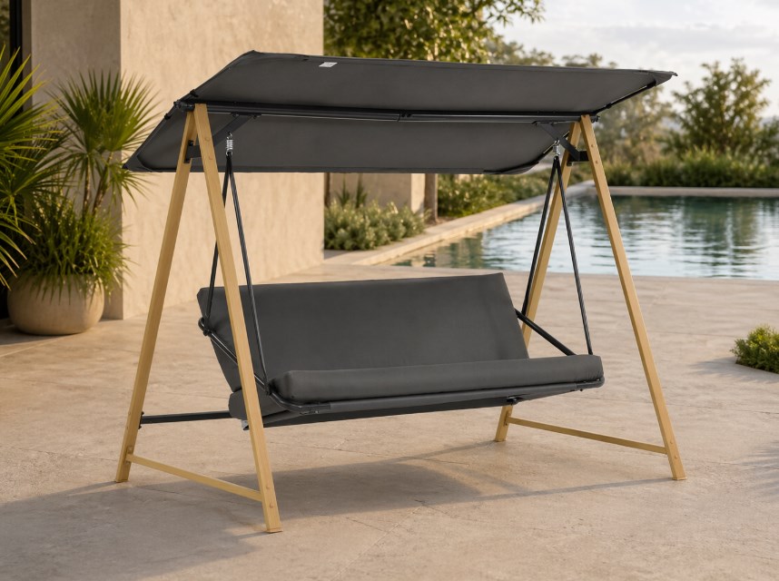Największą zaletą tej huśtawki jest to, że daje realną wygodę, a nie tylko efekt wizualny. Miękkie siedzisko z piankowym wypełnieniem sprawia, że można usiąść wygodnie na dłużej, a 3-osobowa forma daje więcej swobody niż klasyczne pojedyncze siedziska ogrodowe. To mebel, który szybko staje się naturalnym centrum wypoczynku.