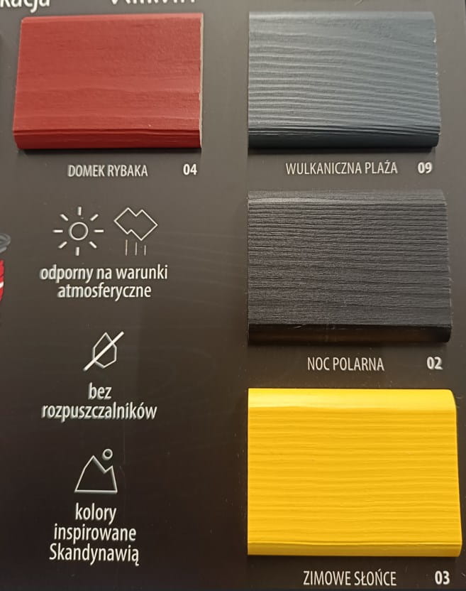 Zainspiruj się kolorami z najdalszych zakątków Skandynawii. Od „Śniegów Północy” po „Wulkaniczną Plażę”, każdy odcień został starannie dobrany, aby wprowadzić do Twojego otoczenia element skandynawskiego spokoju i naturalnego piękna. Wybierz swój ulubiony kolor z satynowym wykończeniem i stwórz przestrzeń, która opowiada Twoją historię. Kolory te nie tylko pięknie się prezentują, ale również są odporne na blaknięcie pod wpływem promieniowania UV, co sprawia, że drewniane powierzchnie długo zachowują swój świeży wygląd.
