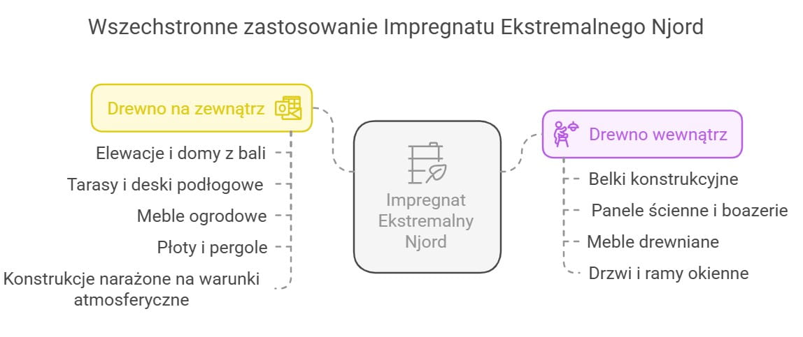 Uniwersalność to kolejna kluczowa zaleta Impregnatu Ekstremalnego Njord. Można go stosować zarówno do drewnianych elementów na zewnątrz, jak i wewnątrz pomieszczeń, co czyni go doskonałym wyborem do szerokiego zakresu zastosowań.