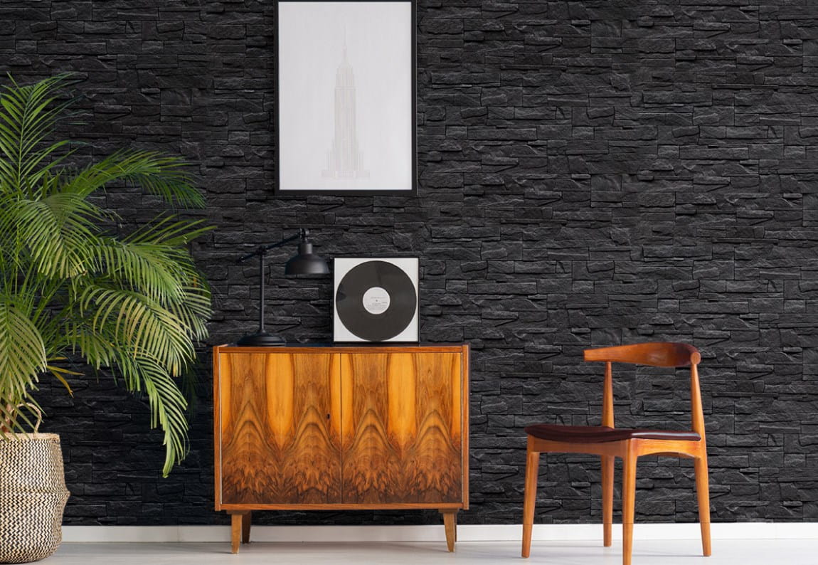 ✔️ Czarny kolor z delikatnym brokatowym połyskiem – ściana wygląda elegancko, nowocześnie i bardziej dekoracyjnie