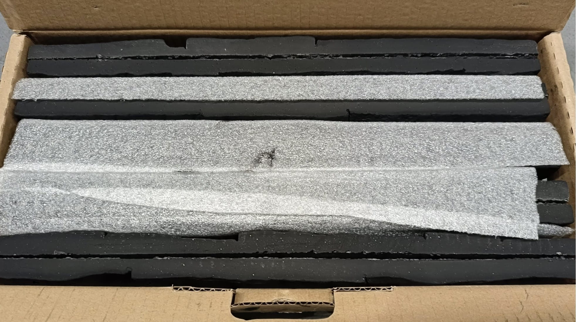 - Ułóż „na sucho” i wymieszaj płytki z kilku kartonów dla ujednolicenia odcieni.