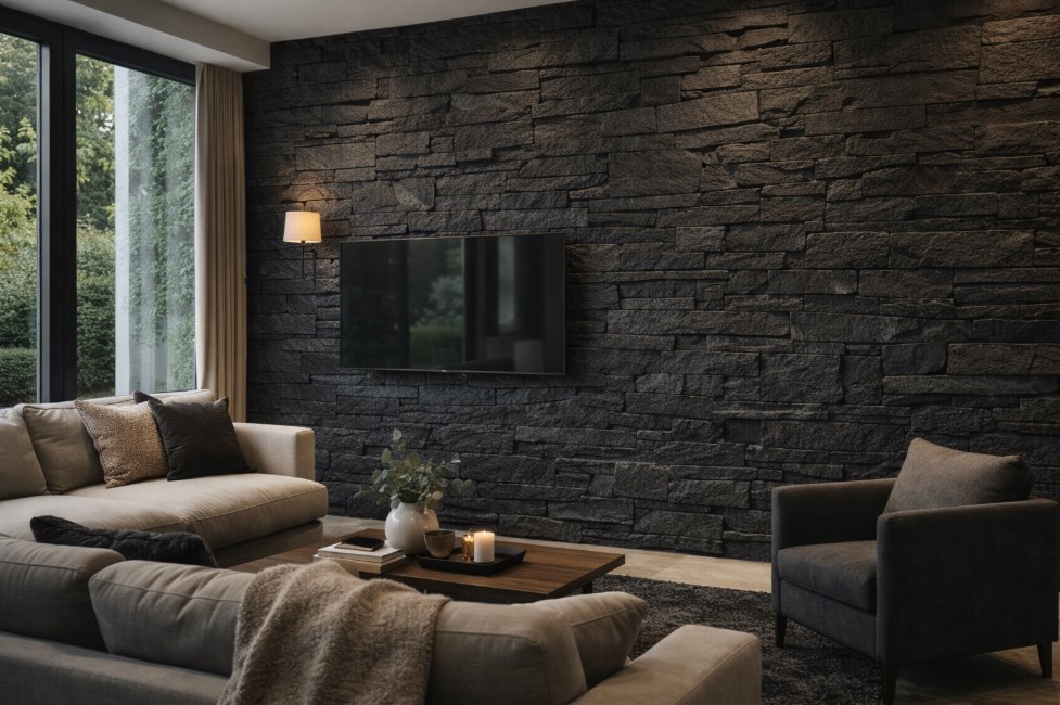 Dużą zaletą tego modelu jest jego uniwersalność. Możesz wykorzystać go jako dekoracyjny akcent na jednej ścianie albo jako bardziej rozbudowane wykończenie większej powierzchni. Czarna kolorystyka dobrze łączy się z drewnem, szkłem, betonem, metalem i jasnymi dodatkami, dlatego ten kamień łatwo wpisać w różne style aranżacyjne.