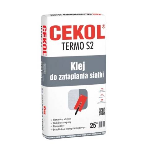 CEKOL TERMO S2 to wysokiej jakości, uniwersalny klej cementowy, który jest idealny do zatapiania siatki z włókna szklanego na izolacji termicznej wykonanej ze styropianu oraz do przyklejania płyt styropianowych do podłoży mineralnych.