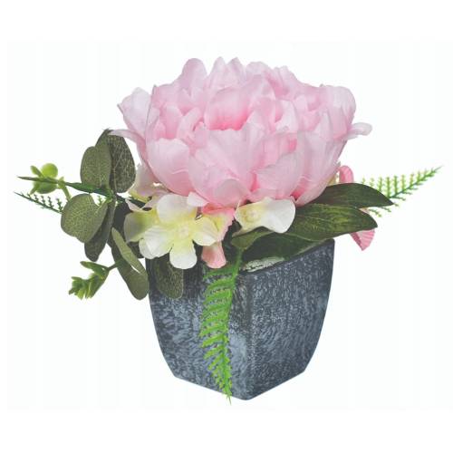 Kompozycja z różową hortensją w doniczce