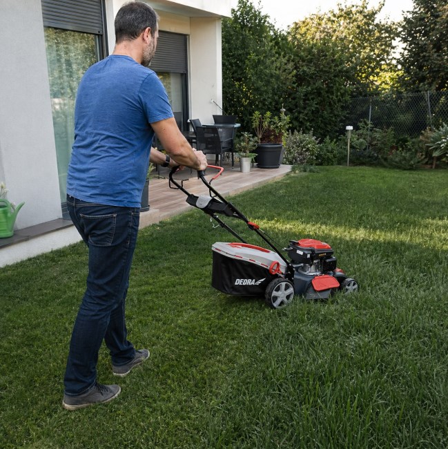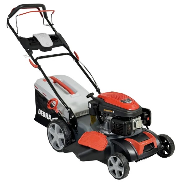 kosiarka spalinowa z napędem | kosiarka DEDRA | kosiarka 46 cm | kosiarka do średniego ogrodu | kosiarka z mulczowaniem | kosiarka z wyrzutem bocznym | kosiarka z wyrzutem tylnym | kosiarka Loncin 166 cm3 | kosiarka 2 ostrza