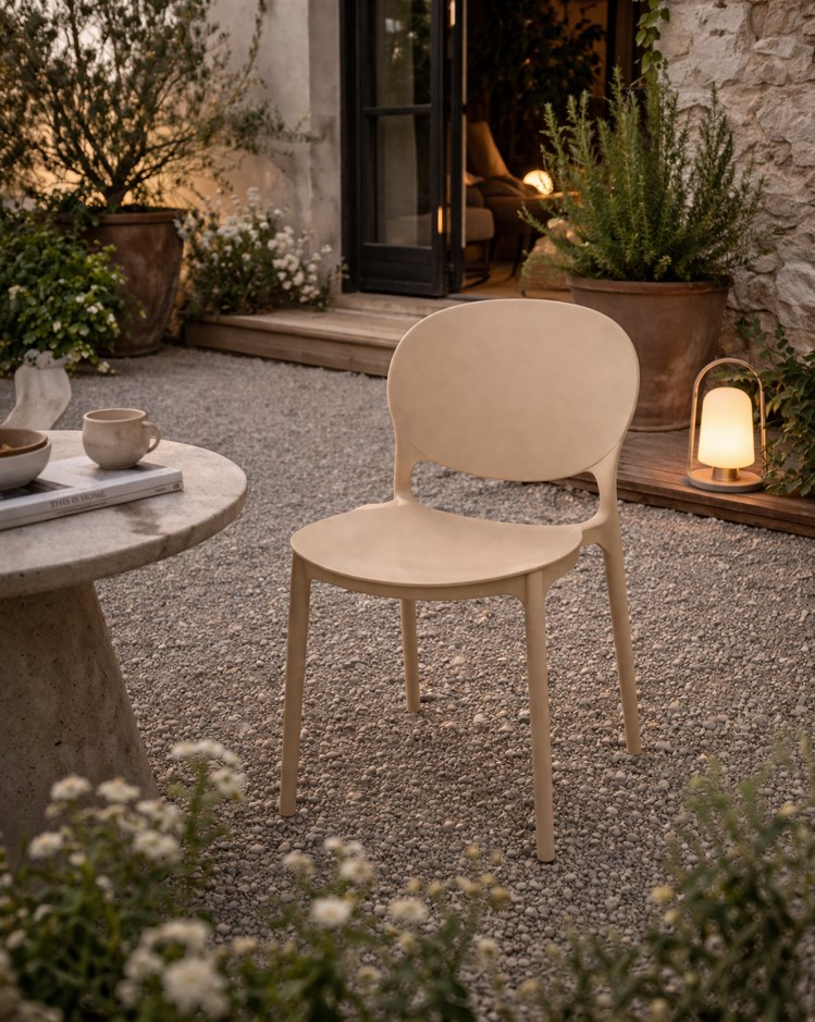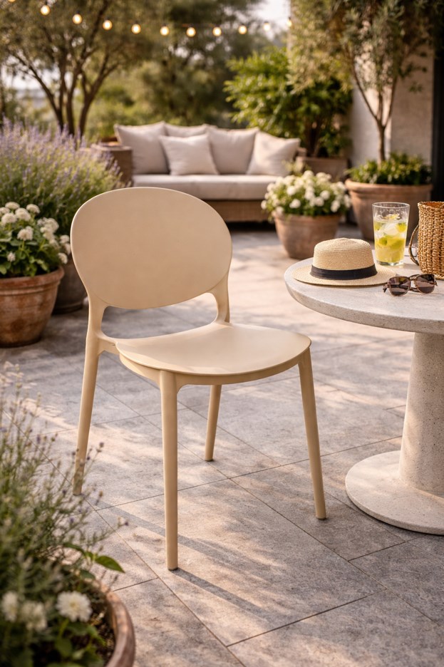 krzesło plastikowe | krzesło beżowe | krzesło do ogrodu | krzesło na taras | krzesło na balkon | krzesło do domu | krzesło z polipropylenu | krzesło JUSTIN