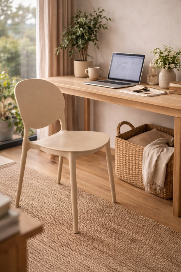 Są meble, które po prostu mają być praktyczne, i są takie, które dodatkowo ocieplają całą aranżację. Krzesło JUSTIN w kolorze beżowym należy właśnie do tej drugiej grupy. To model, który od razu wprowadza do przestrzeni spokojny, naturalny i bardziej przytulny charakter. Beżowy kolor wygląda lekko, elegancko i łatwo odnajduje się w różnych aranżacjach, dlatego krzesło dobrze prezentuje się zarówno jako pojedynczy akcent, jak i element większego zestawu.