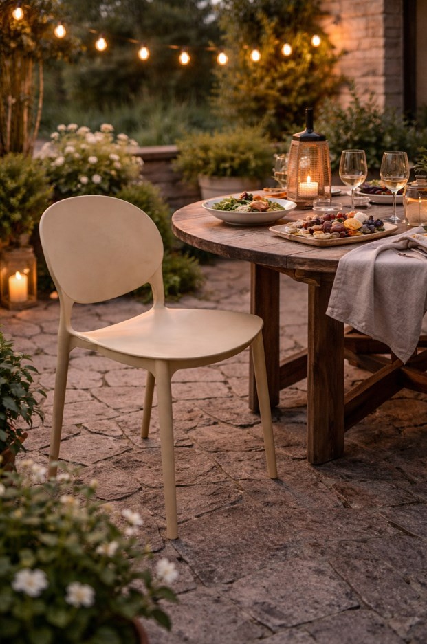 Producent wykonał model JUSTIN z polipropylenu, w jednej bryle, dzięki czemu krzesło nie wymaga skręcania i od razu jest gotowe do użycia. Owalne oparcie, proste nogi i spójna forma nadają mu nowoczesny wygląd, a odporność na działanie warunków atmosferycznych sprawia, że można korzystać z niego zarówno wewnątrz, jak i na zewnątrz pomieszczeń. To połączenie wygody, prostoty i estetyki, które naprawdę dobrze pracuje na co dzień.