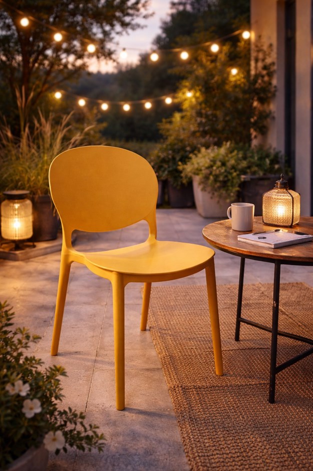 krzesło plastikowe | krzesło musztardowe | krzesło do ogrodu | krzesło na taras | krzesło na balkon | krzesło do domu | krzesło z polipropylenu | krzesło JUSTIN