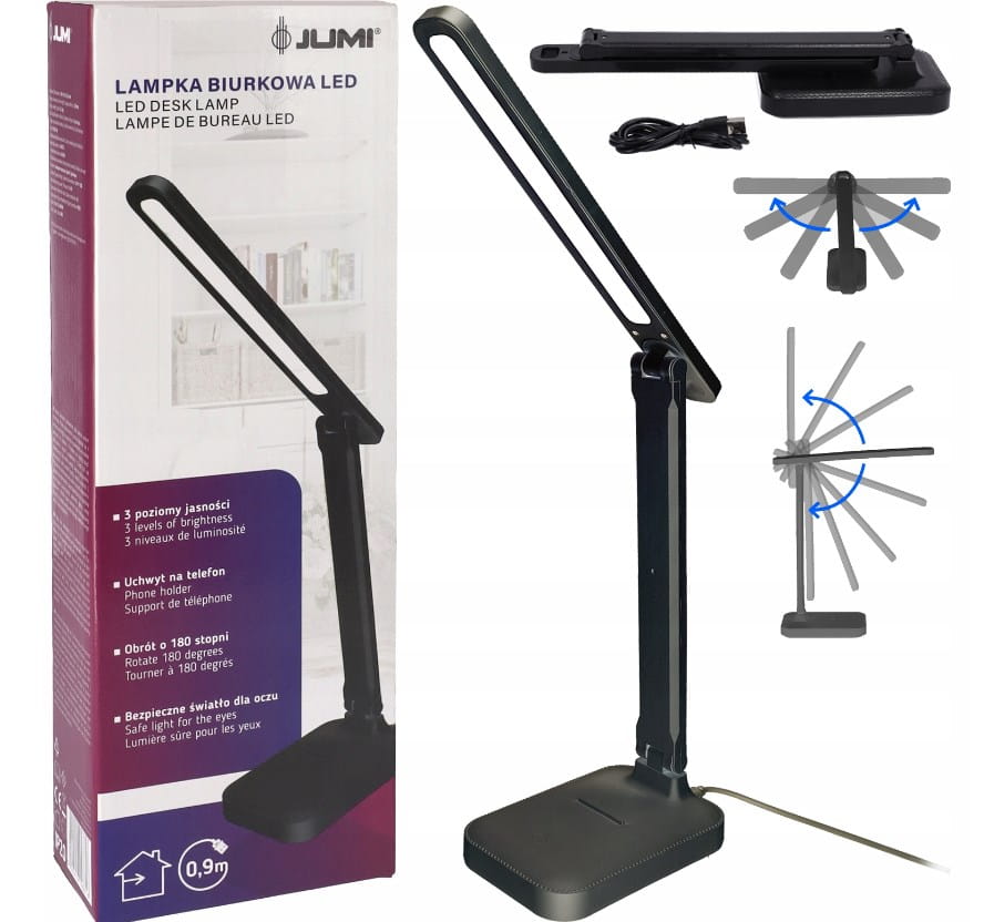✔️ Długość kabla: 0,9 m, co zapewnia elastyczność w ustawieniu lampki na biurku.