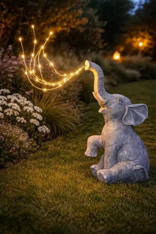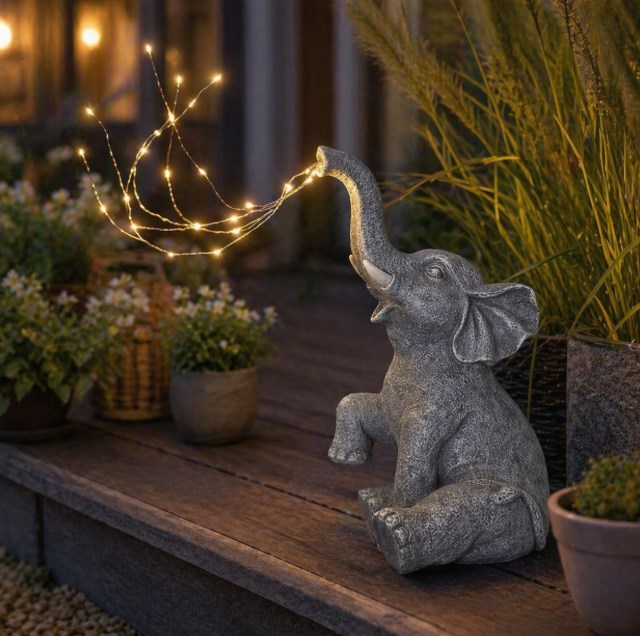 Dekoracyjna forma słonia wyróżnia tę lampę na tle klasycznych modeli ogrodowych i sprawia, że pełni jednocześnie funkcję ozdoby. Solarne zasilanie zwiększa wygodę codziennego użytkowania, a ciepła barwa światła pomaga budować przyjemną atmosferę wokół domu. To dobry wybór, gdy szukasz produktu, który jest jednocześnie estetyczny, praktyczny i gotowy do ustawienia bez skomplikowanego montażu.