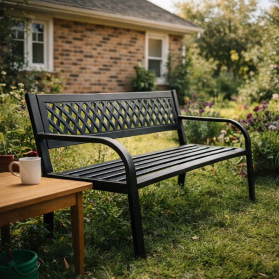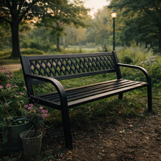 - trwała ławka ogrodowa metalowa o dużej wytrzymałości
