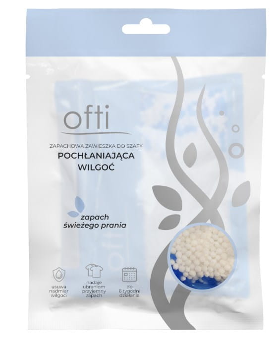 Produkt: OFTI – zapachowa zawieszka do szafy pochłaniająca wilgoć (produkt zapachowy do wnętrz; jednorazowa zawieszka).