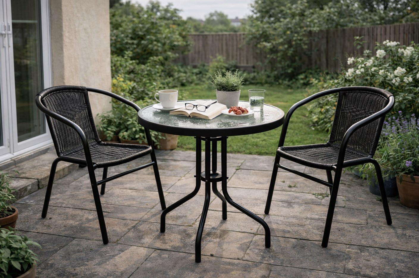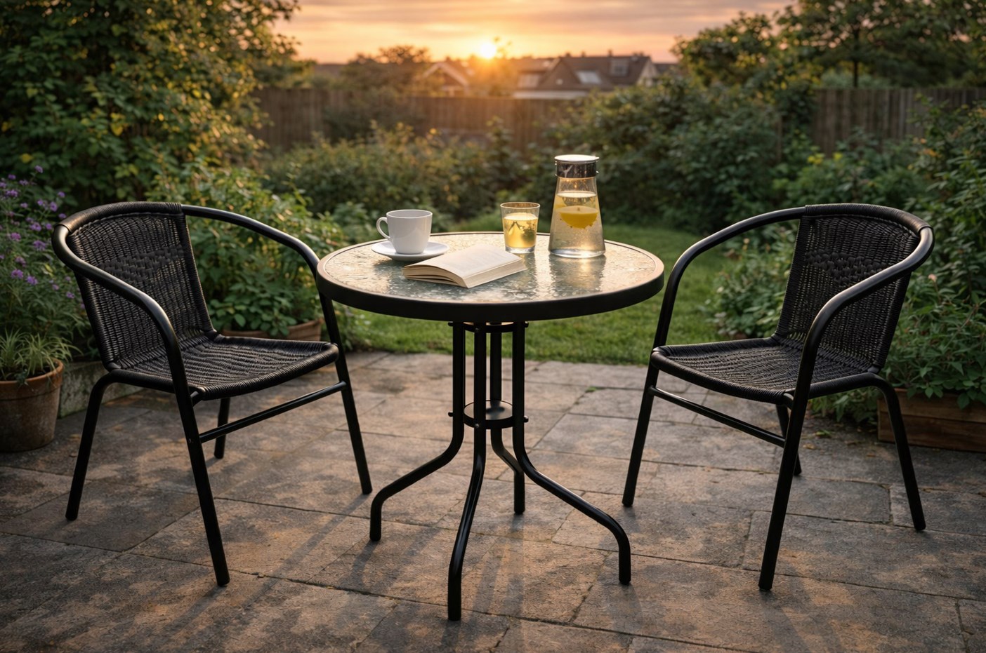 Kompaktowy rozmiar, solidna konstrukcja i blat ze szkła hartowanego sprawiają, że stolik jest wygodny w codziennym użytkowaniu, a jednocześnie odporny na warunki atmosferyczne. To dobry wybór dla osób, które chcą stworzyć wygodne miejsce do kawy, posiłku lub odpoczynku na świeżym powietrzu bez zajmowania dużej ilości przestrzeni.