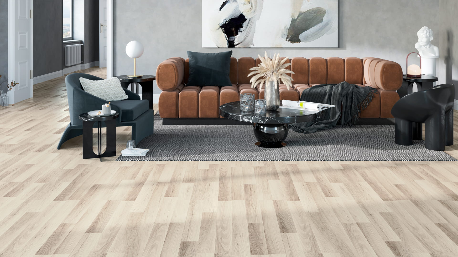 Subtelne usłojenie i lekko rozbielony odcień dają efekt czystej, jasnej podłogi, która pasuje do stylu scandi, modern i japandi. To bezpieczna, ponadczasowa baza – łatwo dobierzesz do niej zarówno ciepłe drewno, jak i chłodne, metalowe akcenty.