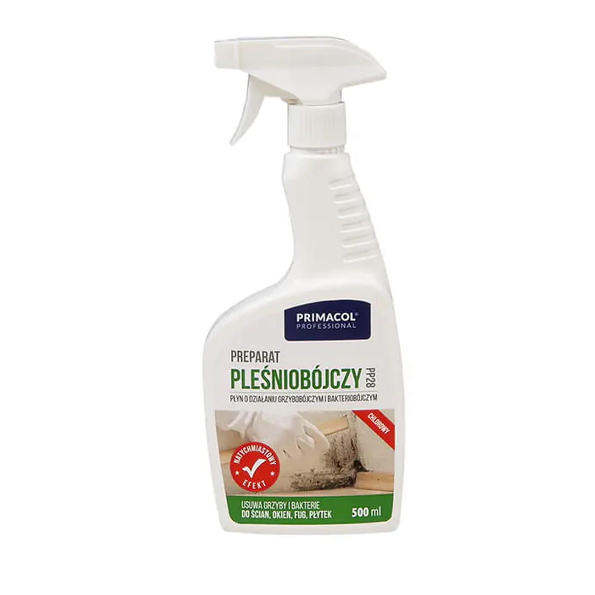 Preparat pleśniobójczy PP28 500 ml to chlorowy płyn biobójczy, zaprojektowany specjalnie do walki z pleśnią na ścianach, tynkach, fugach i płytkach – tam, gdzie wilgoć i słaba wentylacja najczęściej dają o sobie znać.