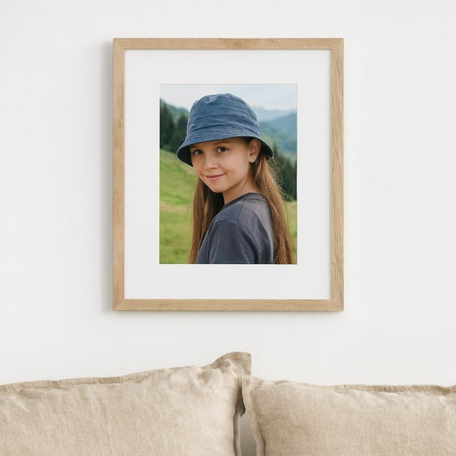 ✔️ Sposób ekspozycji: możliwość powieszenia w pionie lub poziomie; mniejsze formaty (np. 10×15, 13×18, 15×21 cm) dodatkowo wyposażone w nóżkę do postawienia