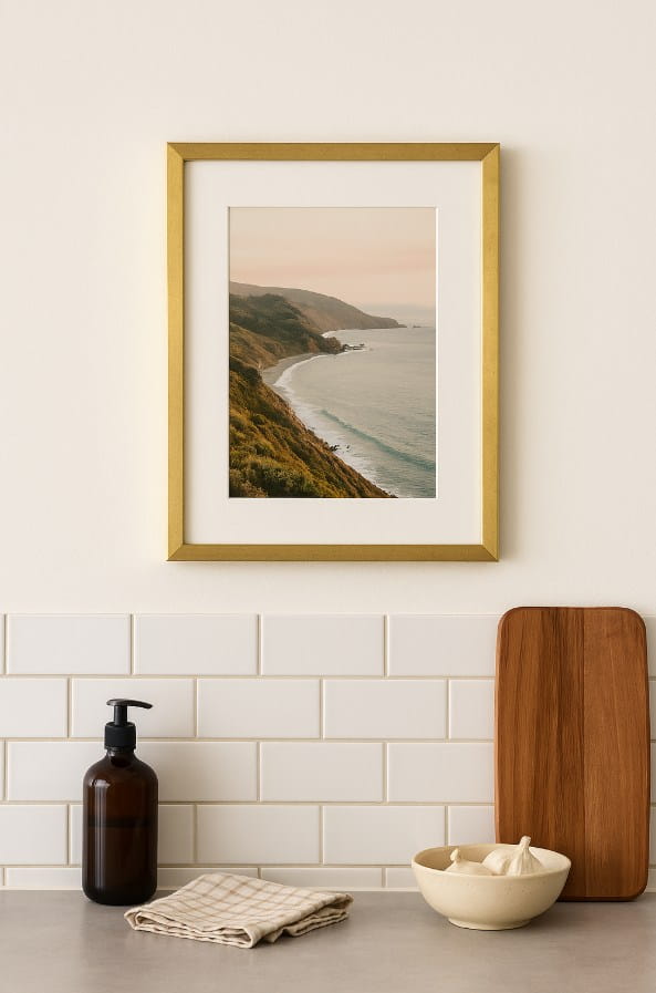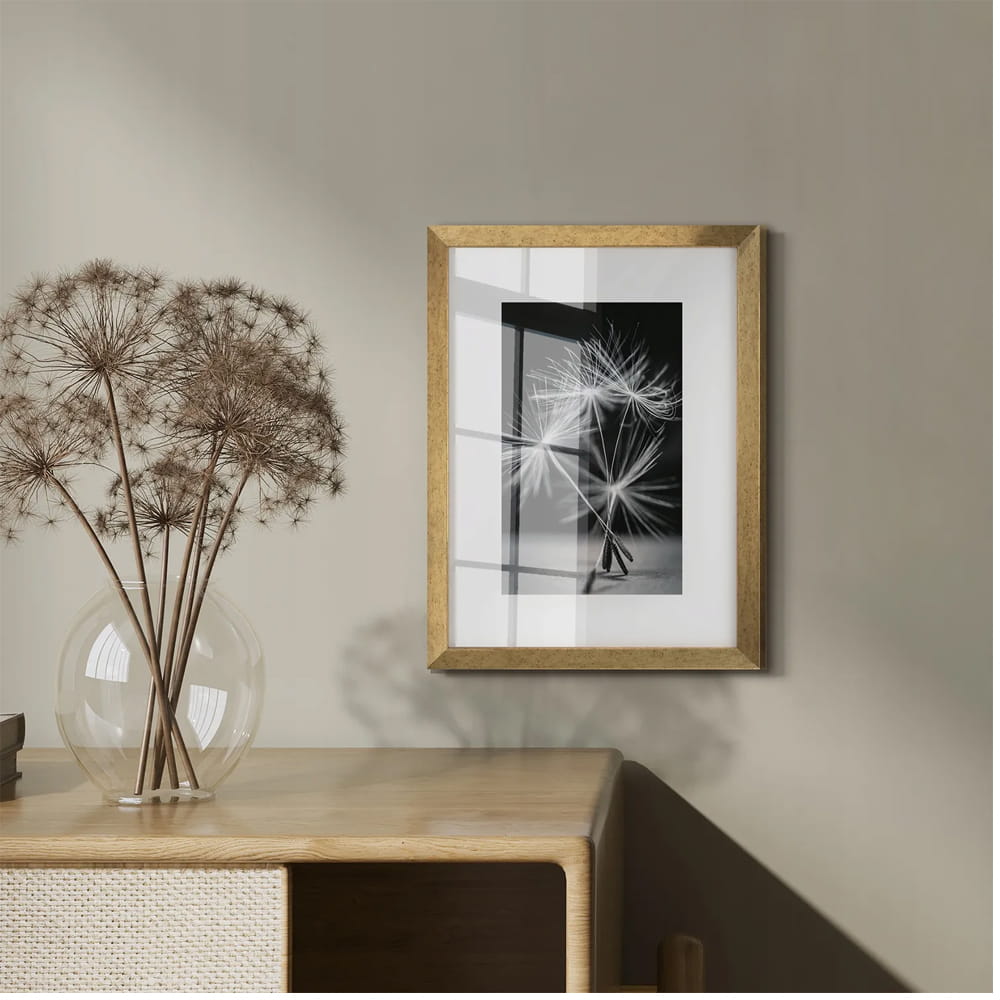 Subtelnie połyskująca powierzchnia ramy pięknie współgra ze światłem, podkreślając fotografie, ale ich nie przytłaczając.