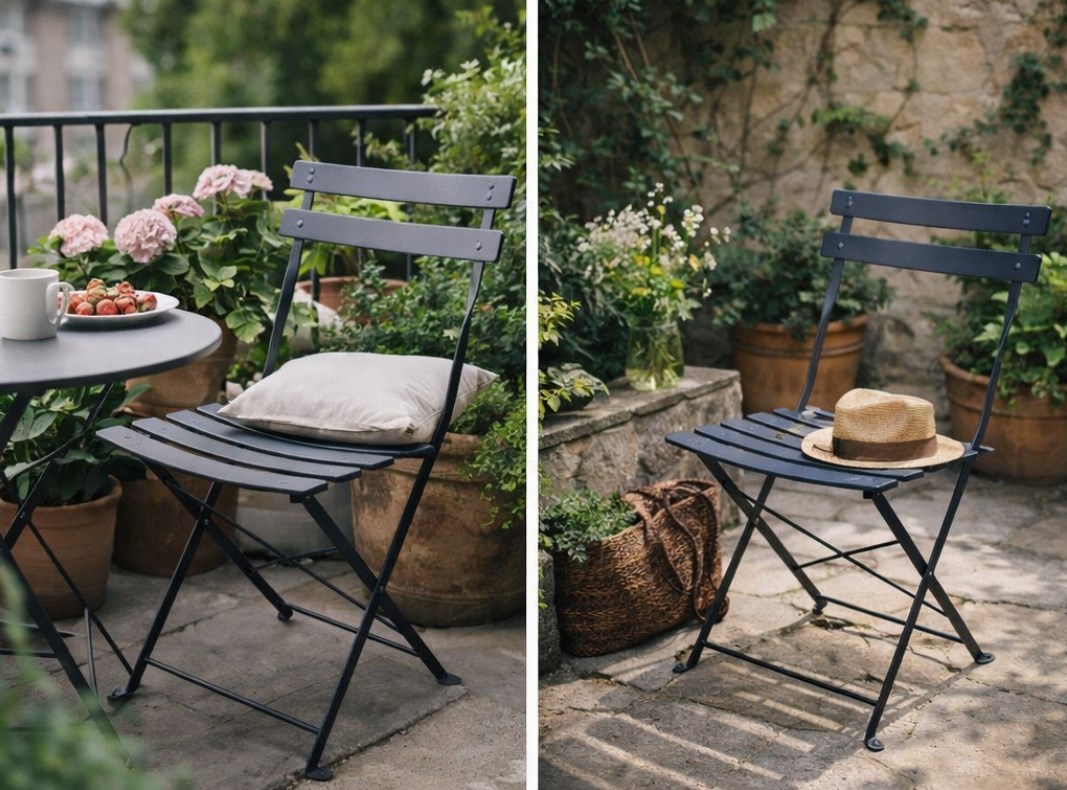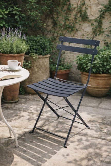 składane krzesło ogrodowe | metalowe krzesło bistro | krzesło balkonowe | krzesło tarasowe | szare krzesło ogrodowe | krzesło składane metalowe | krzesło do małego balkonu | krzesło odporne na warunki atmosferyczne