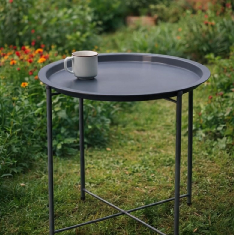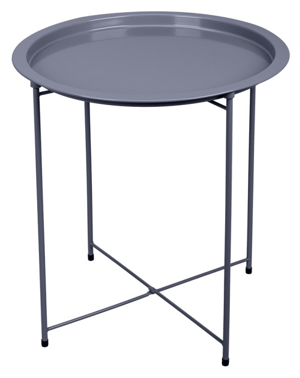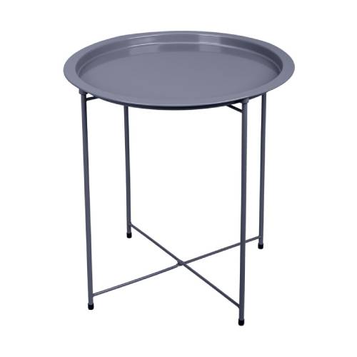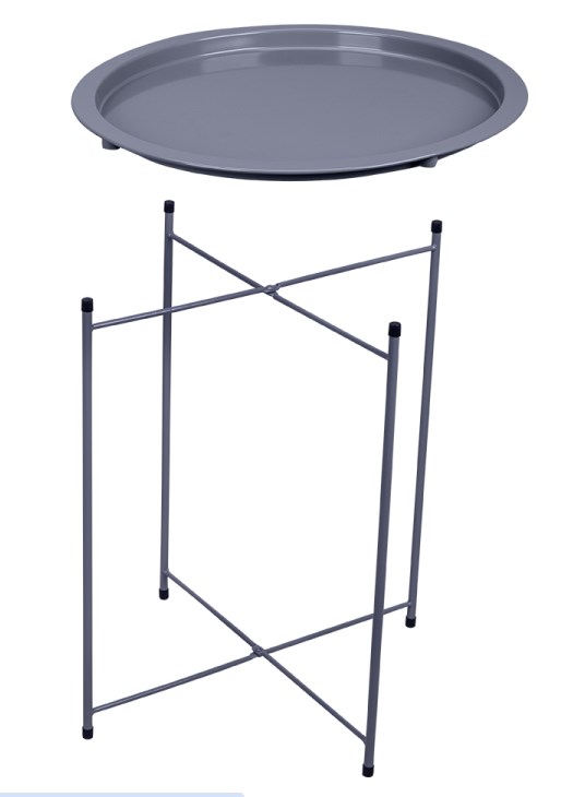 Składany stolik z tacą szary – praktyczny stolik ogrodowy i balkonowy